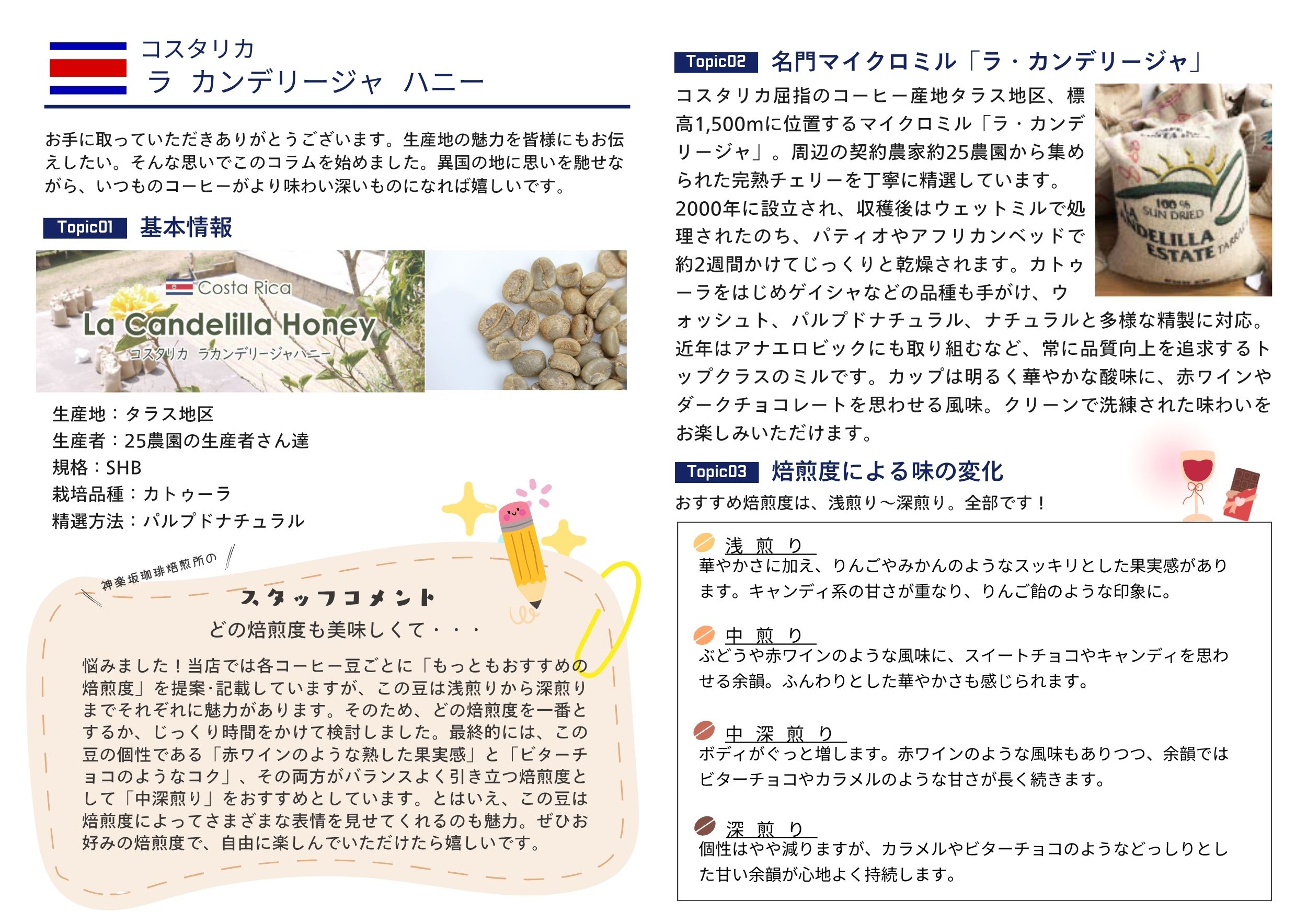 ラ・カンデリージャより、魅力あふれるハニープロセスのコーヒーが届きました。